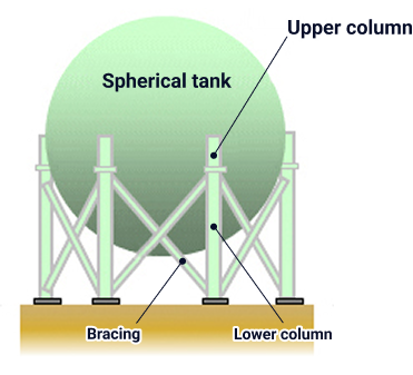Spherical tanks sway in various directions when an earthquake occurs, placing significant stress on the supporting structures (columns, braces, etc.) that hold the spheres, which contain flammable gas. If the structural strength is insufficient, cracks or fractures may result. A major accident occurred during the Great East Japan Earthquake, for instance, due to the fracturing of a brace—one of the tank’s key supporting structures. In light of such incidents, the seismic performance of spherical tanks has been re-evaluated, and reinforcement measures have been implemented for components found to be structurally inadequate.